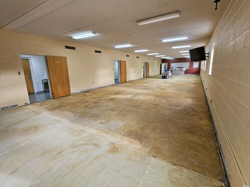 The fellowship hall can still be used for luncheons and other events during the sanctuary renovation. The tables are stored across the hall and can be set up quickly.