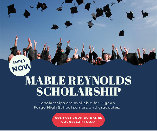 The Mable Reynolds Scholarship, an award for graduating seniors at Pigeon Forge High School and former PFHS graduates, is given each year to students who plan to attend full- or part-time undergraduate studies or seminary. Applications are due to the church no later than May 4, 2026. More information is available via the application link below.